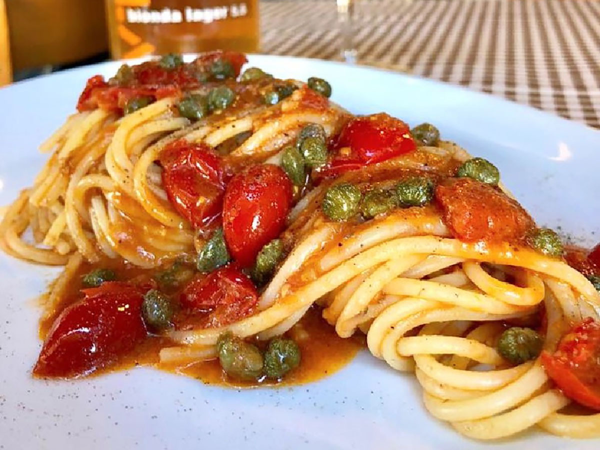 Aggiungete al sugo un po’ d’acqua di cottura degli spaghetti. Se preferite, rimuovete gli spicchi d’aglio. Aggiungete anche capperi e olive nere, un minuto prima di spegnere il fuoco. È importante che cottura degli spaghetti debba essere al dente. Quindi, saltateli in padella con gli altri ingredienti per un paio di minuti per farli insaporire e amalgamare bene al sugo. Servite immediatamente, accompagnati da un buon bicchiere di vino! Buon appetito!