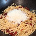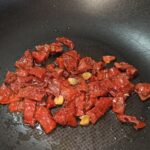 Nella stessa padella, tagliuzzate i pomodori secchi, aggiungete qualche cappero,