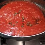 Fate cuocere per dieci minuti, poi aggiungete il passato di pomodori, i capperi e lasciate insaporire per un paio di minuti,