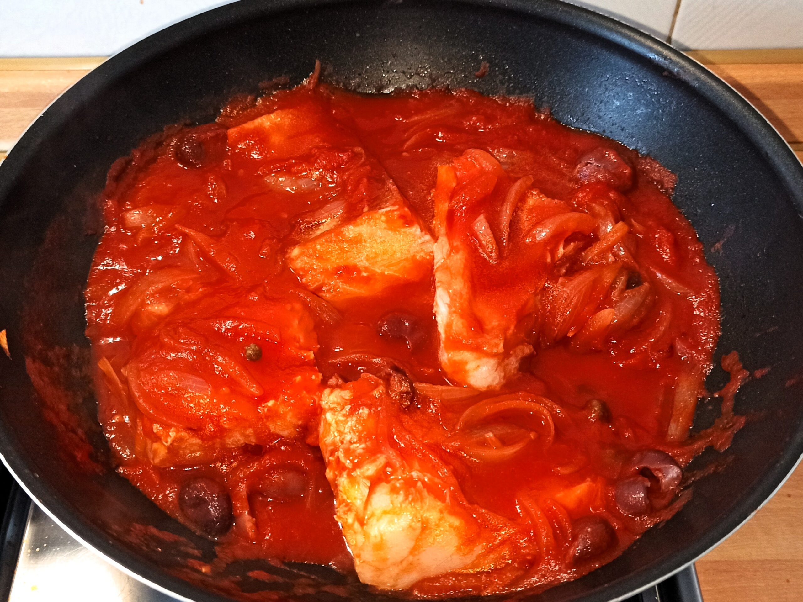 Fate cuocere per circa quindici minuti, poi aggiungete lo stoccafisso tagliato a pezzi.