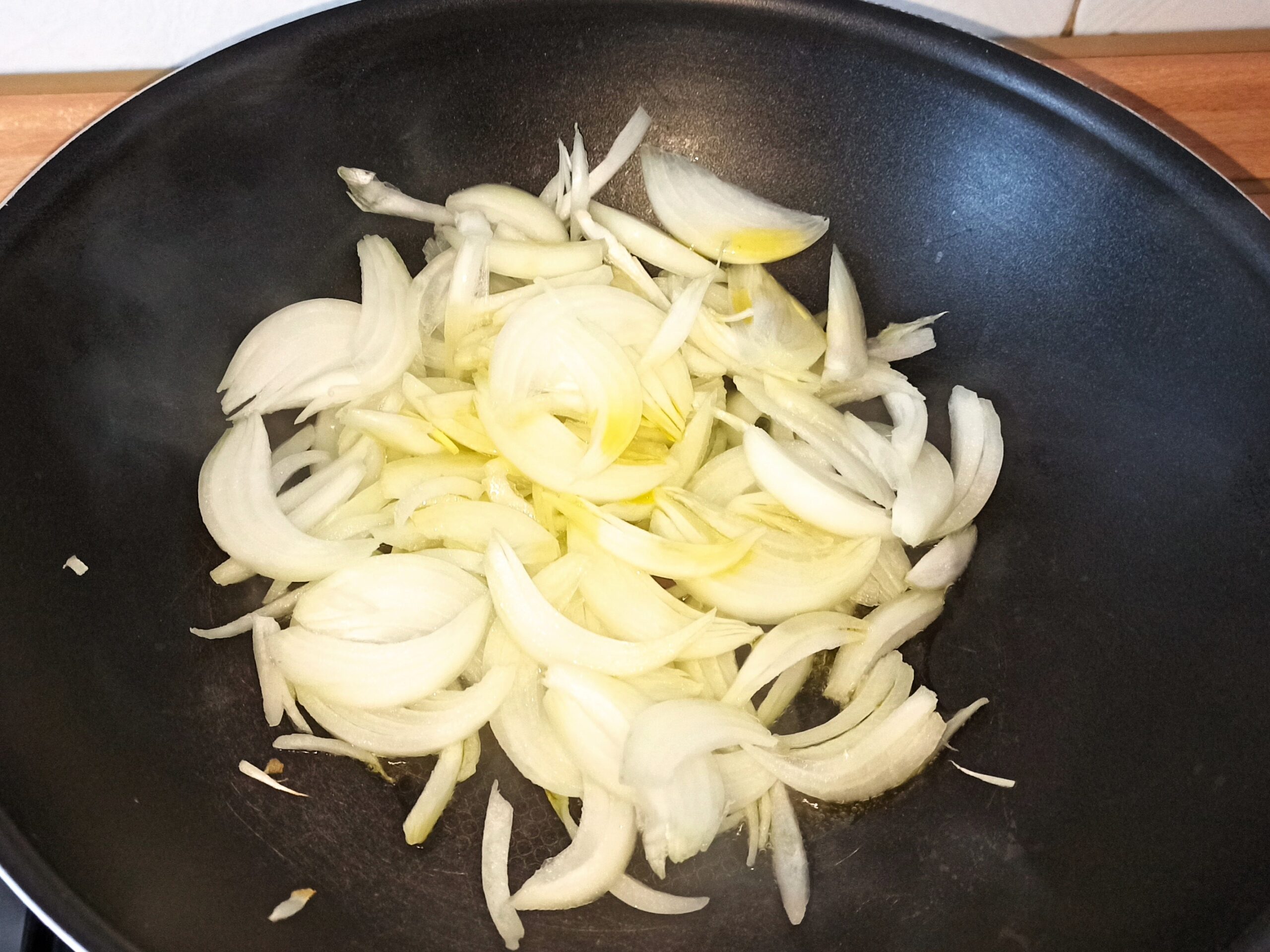 Per preparare lo stoccafisso di mamma Assunta, iniziate a sbucciare le cipolle, sciacquatele sotto acqua corrente e tagliatele a fettine. In un capiente tegame mettete abbondante olio evo, aggiungete le cipolle e fatele appassire a fiamma media.