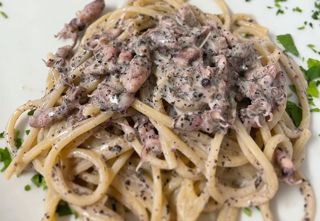 Questi tagliolini conquisteranno i palati dei vostri ospiti grazie al loro equilibrio tra la delicatezza dei calamaretti e l’aroma avvolgente del tartufo, rendendo il piatto una vera esperienza sensoriale. Buon appetito!