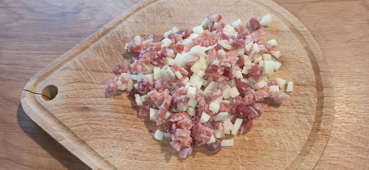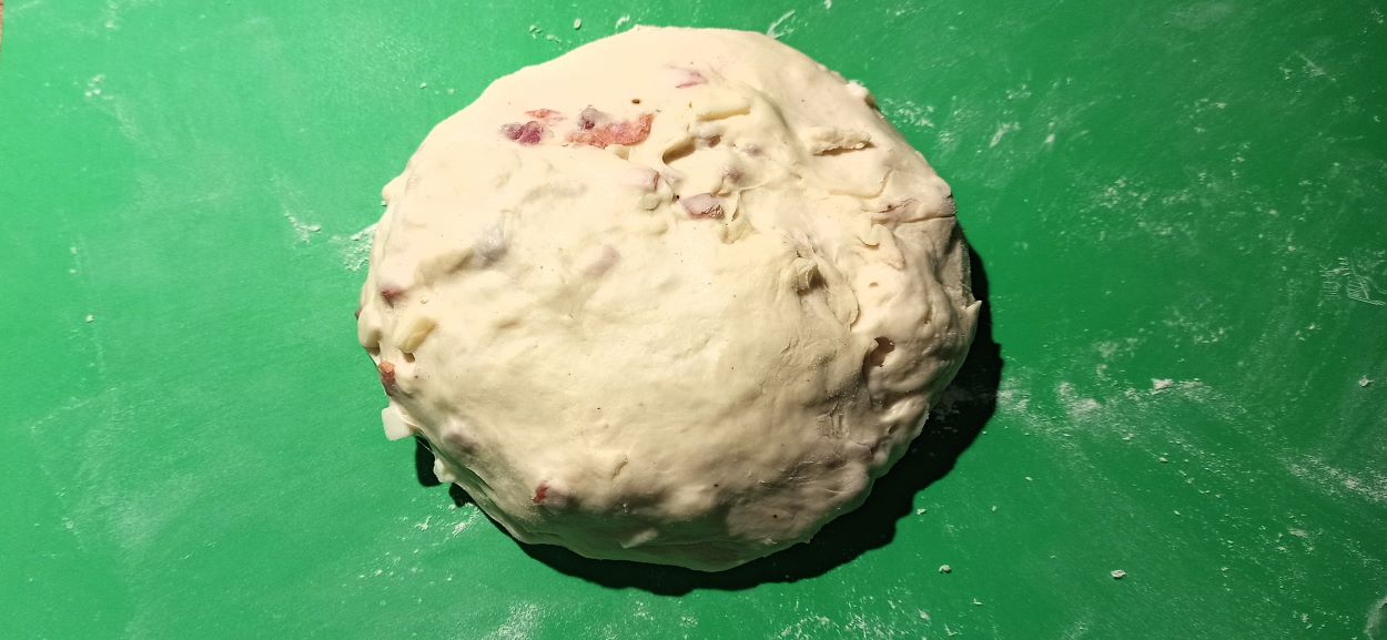 Appena lo strutto, sarà stato tutto assorbito dall’impasto, aggiungete il mix di salumi e formaggi.