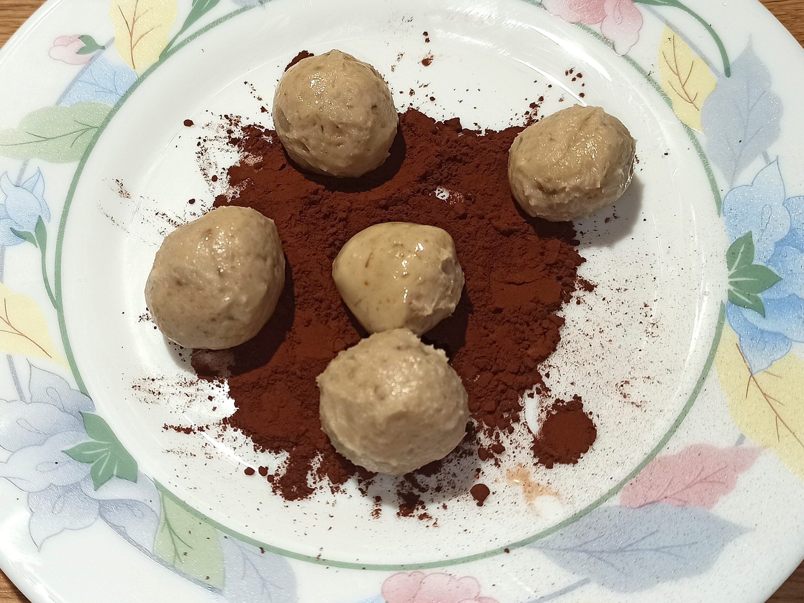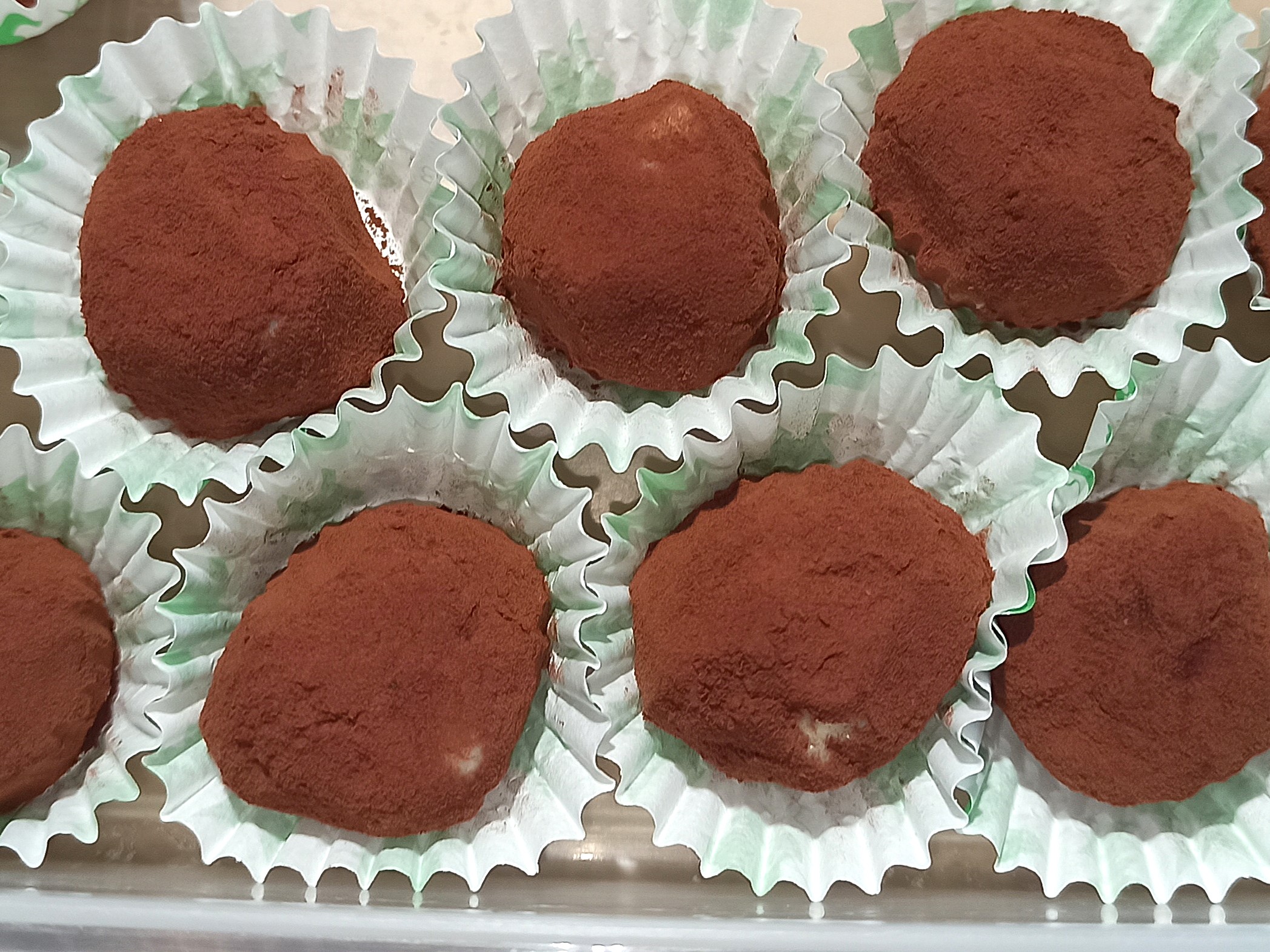 Trascorso questo tempo, modellate con le mani tante palline, della grandezza desiderata, poi rotolatele nel cacao amaro,
