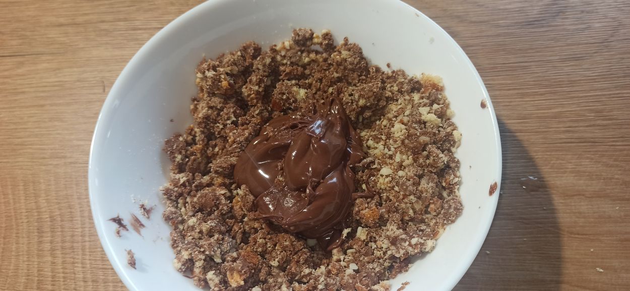 Continuate a mescolare, aggiungete la crema alla nocciola e amalgamate il tutto fino ad ottenere un composto omogeneo.