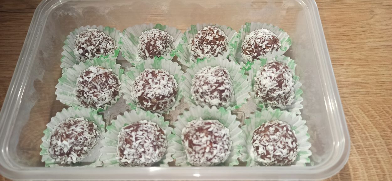 Con l’aiuto di un cucchiaino, prelevate delle porzioni, formate delle palline, poi passatele nel cocco rapè,