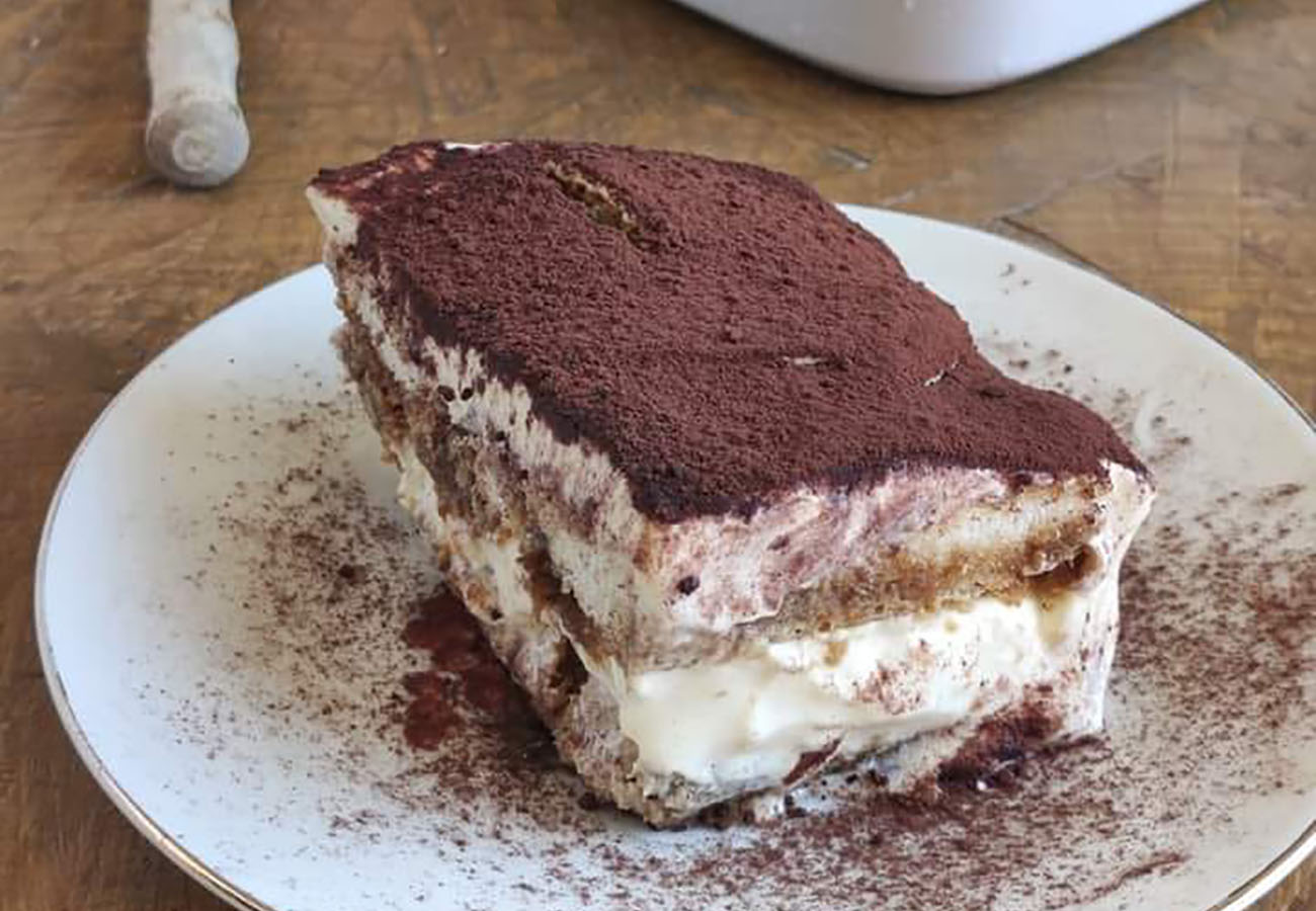Il savoiardo viene inumidito con una bagna a base di acqua, zucchero e caffè, aromatizzati con scorze di arancia e limone e cardamomo verde. Per la mousse Damiano parte dalla base di pata à bombe, per unirla con il mascarpone e la panna precedentemente lavorati a parte. Infine aggiunge la colla di pesce che aiuta a mantenere insieme la crema. A questo punto Damiano può procedere a stratificare il tiramisù. Il dolce è pronto, buon appetito.
