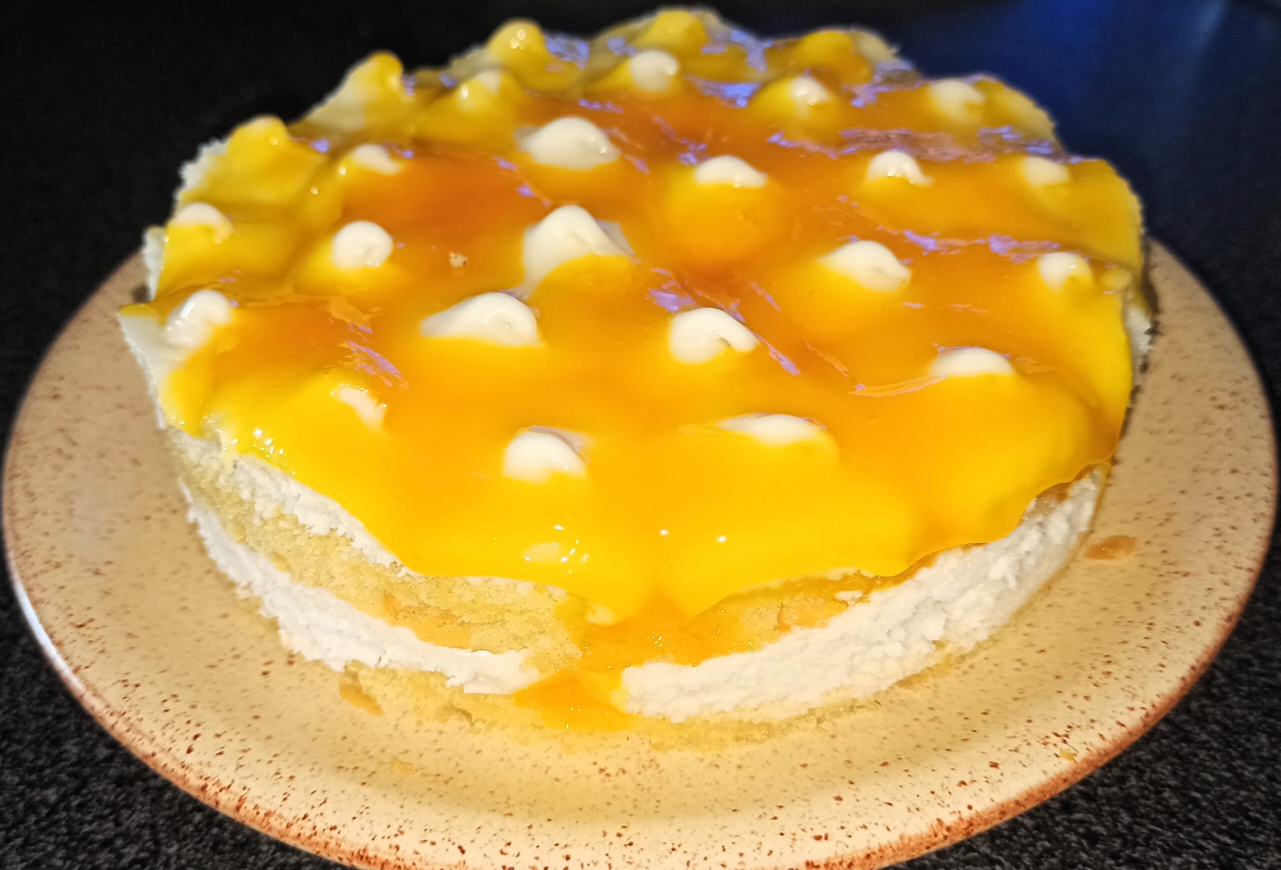 Mettete il dolce così formato in frigo per almeno due ore prima di completare con la glassa al limone. Trascorso questo tempo, iniziate a preparare la glassa al limone. Versate in un pentolino lo zucchero e l’acqua, aggiungete anche il succo di limone e l’amido di mais, mescolate con una frusta. Portate a bollore a fiamma bassa, appena inizia a bollire, aggiungete la curcuma, sempre mescolando con la frusta, spegnete la fiamma.