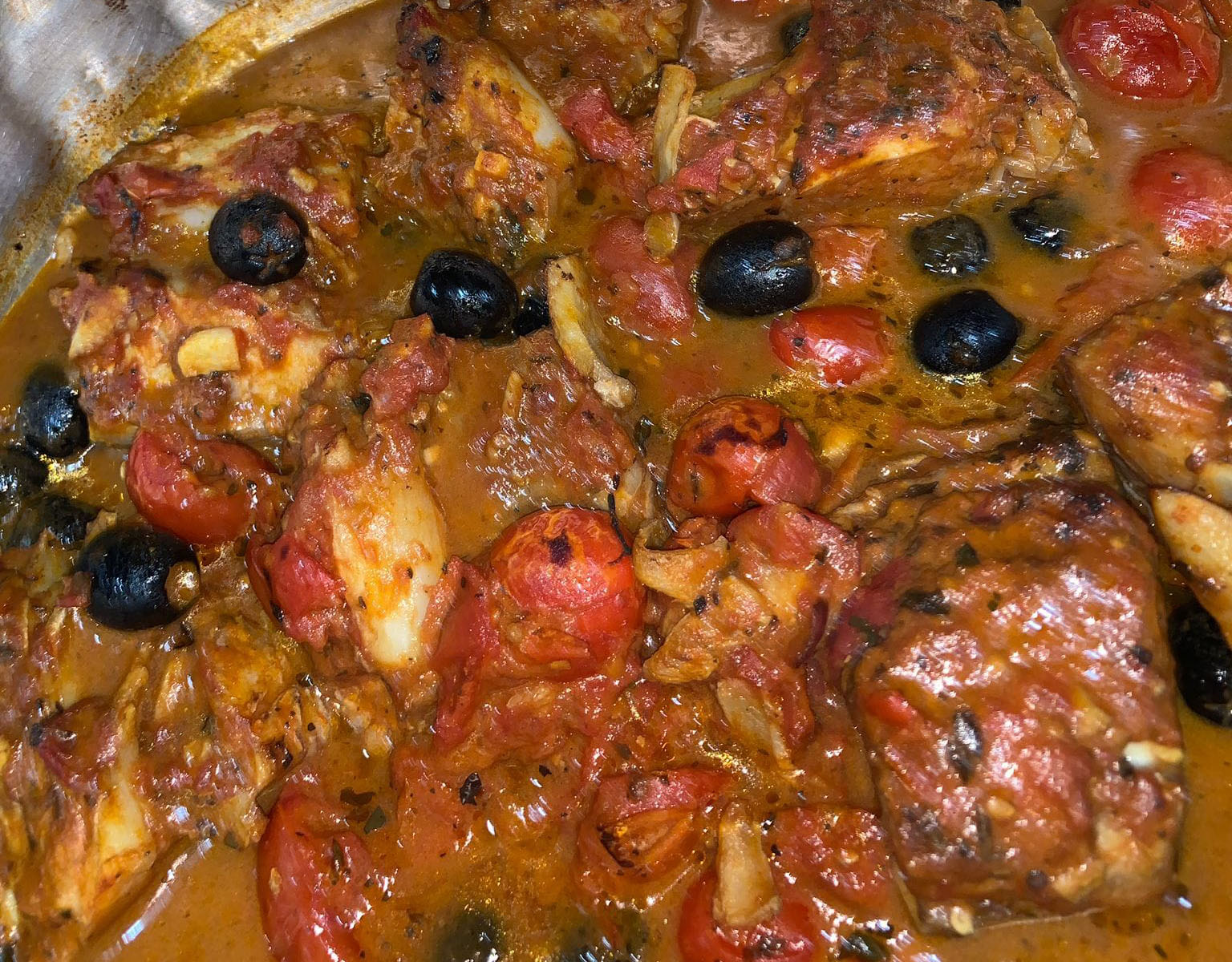 Il tonno ammuttunato è una ricetta tipica siciliana. Il nome deriva dal metodo di preparazione di questo piatto. Sul pesce infatti vengono effettuati tanti piccoli tagli. Ognuno di questi viene riempito con pezzetti di aglio e foglioline di menta. Oggi ne esistono diverse varianti, che prevedono ad esempio di riempirlo con del caciocavallo o con del pepe in grani. Tornando alla ricetta originale, solo dopo aver effettuato questa ammuttunatura il pesce viene messo a cuocere nel sughetto, che si presta poi benissimo anche come condimento per la pasta. Assolutamente da provare.