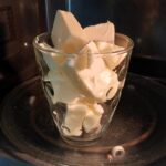 Trascorso questo tempo, mettete a bagno in acqua fredda 4 fogli di gelatina, per dieci minuti. Mettete il cioccolato fondente, nel bicchiere del bimbi,