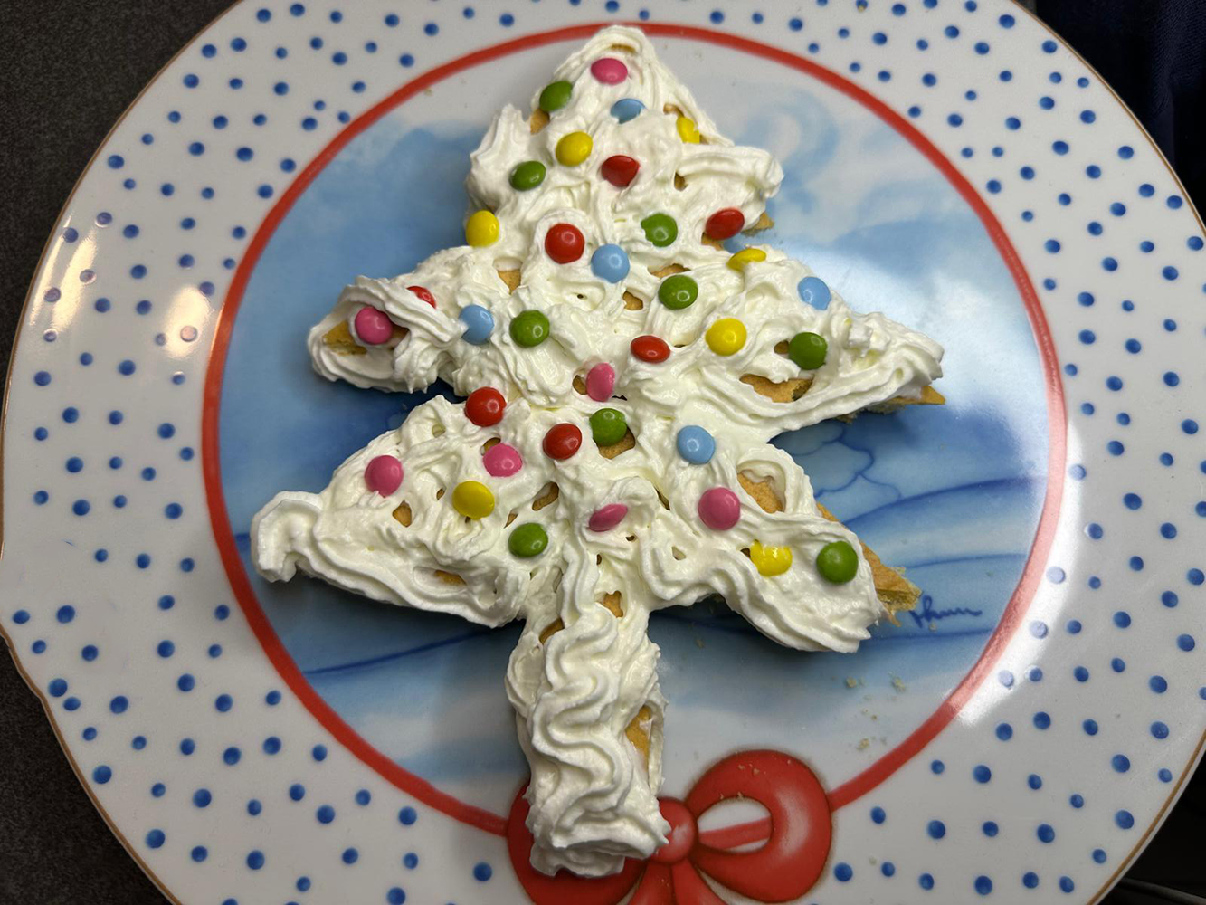 Adesso bisogna solo Montare la Torta: Tagliate il pan di spagna in due strati orizzontali. Farcite con uno strato generoso di crema pasticcera. Sovrapponete il secondo strato di pan di spagna e premete leggermente per far aderire. E indine Decorare: Montare la panna fresca con lo zucchero a velo fino a ottenere una consistenza ferma. Ricoprite l’intera torta con la panna montata, lisciandola con una spatola o creando delle onde per un effetto neve. Decora con Smarties , creando un motivo natalizio (ad esempio, lucine sull’albero). Spolverate con zucchero a velo per un effetto innevato. Aggiungete eventualmente decorazioni di zucchero come stelline o fiocchi di neve.