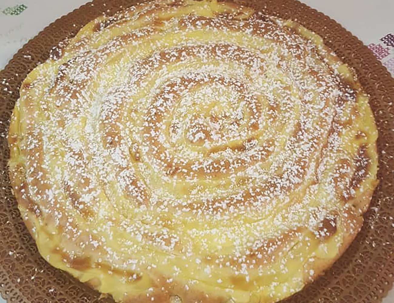 Una volta tiepida togliere dalla teglia aiutandoci con un coperchio grande per poi capovolgerla sul piatto di portata e spolverizzare con zucchero a velo. Ecco alcune varianti: Invece dell’ arancia potete usare anche il limone, sia nella crema che nella base, a vostro piacere, ed invece del latte potete mettere o succo di arancia o di limone, inoltre potete anche mettere una pera insieme alle mele e spolverizzarle di cannella prima di metterle nella teglia.