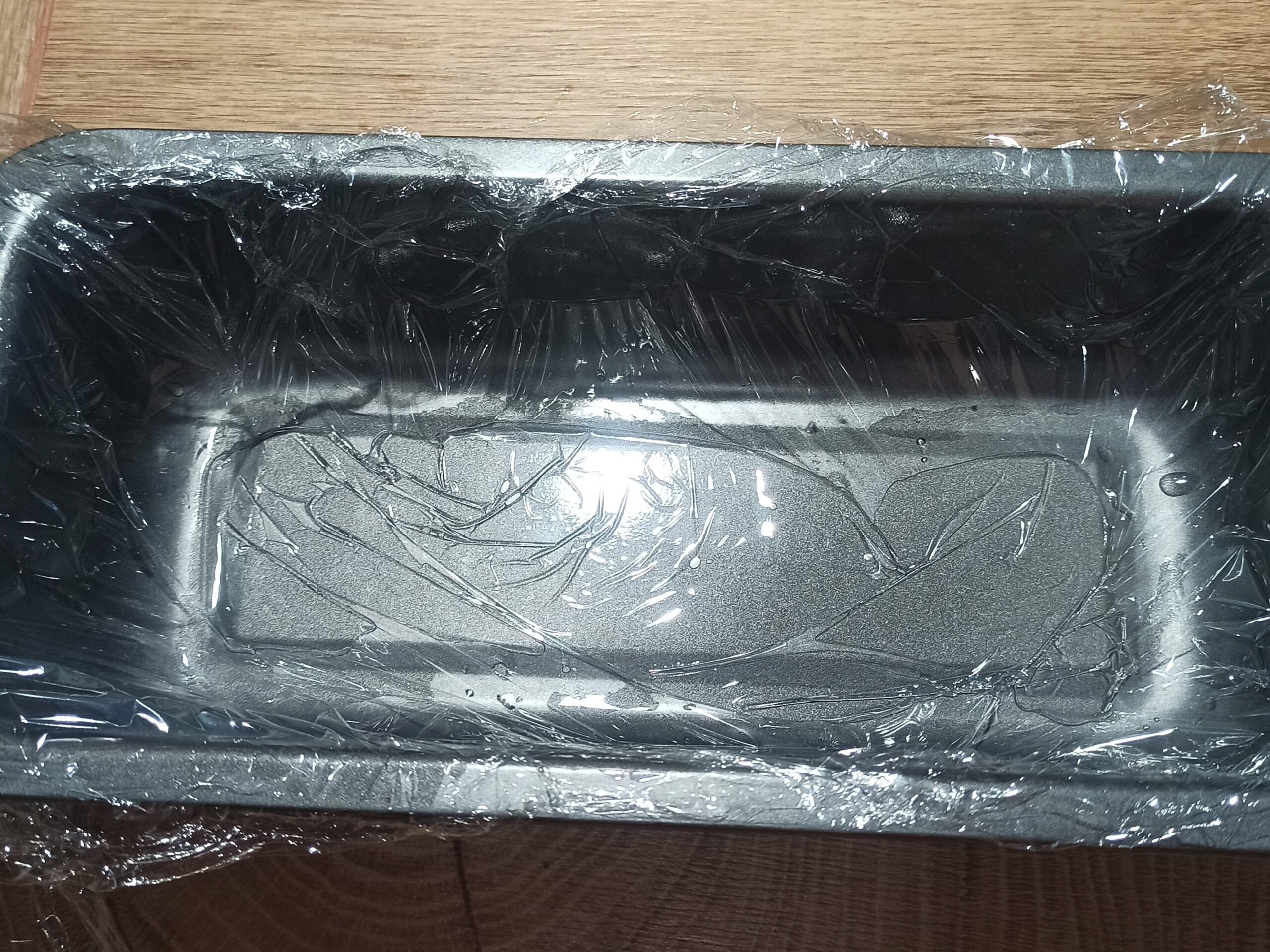 Per preparare la torta lingotto, iniziate ‘a foderare con la pellicola, uno stampo da plum cake.