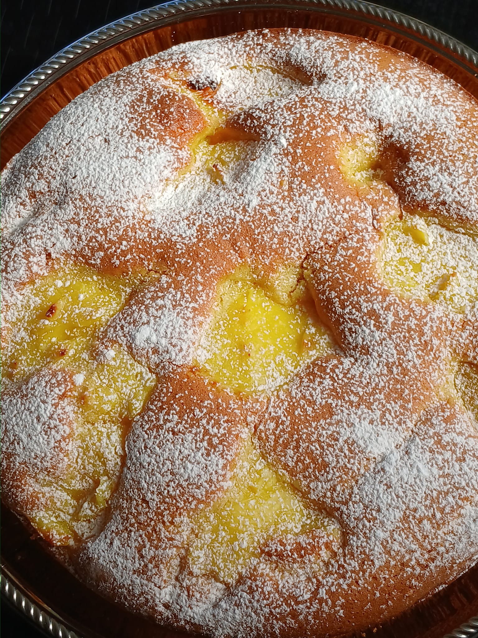 Con l’aiuto di uno sbattitore elettrico, lavorare le uova con lo zucchero e la buccia di limone grattugiata. Poi unire il latte, l’olio e alla fine la farina e il lievito setacciati. Lavorare gli ingredienti fino ad ottenere un impasto senza grumi e spumoso. Versare in una teglia, precedentemente imburrata e infarinata di 26 cm di diametro, se si vuole più alta consiglio diametro 24. Al termine, incorporare la crema fredda a cucchiaiate. Infornare la Tua Torta Nua in forno caldo a 160° ( ventilato) 180° ( statico) per 40 minuti ,ma prima fare sempre la prova con uno spiedino di legno ,se è asciutto è cotto. Fare raffreddare la Torta Nua e prima di servirla, spolverizzare con dello zucchero a velo.