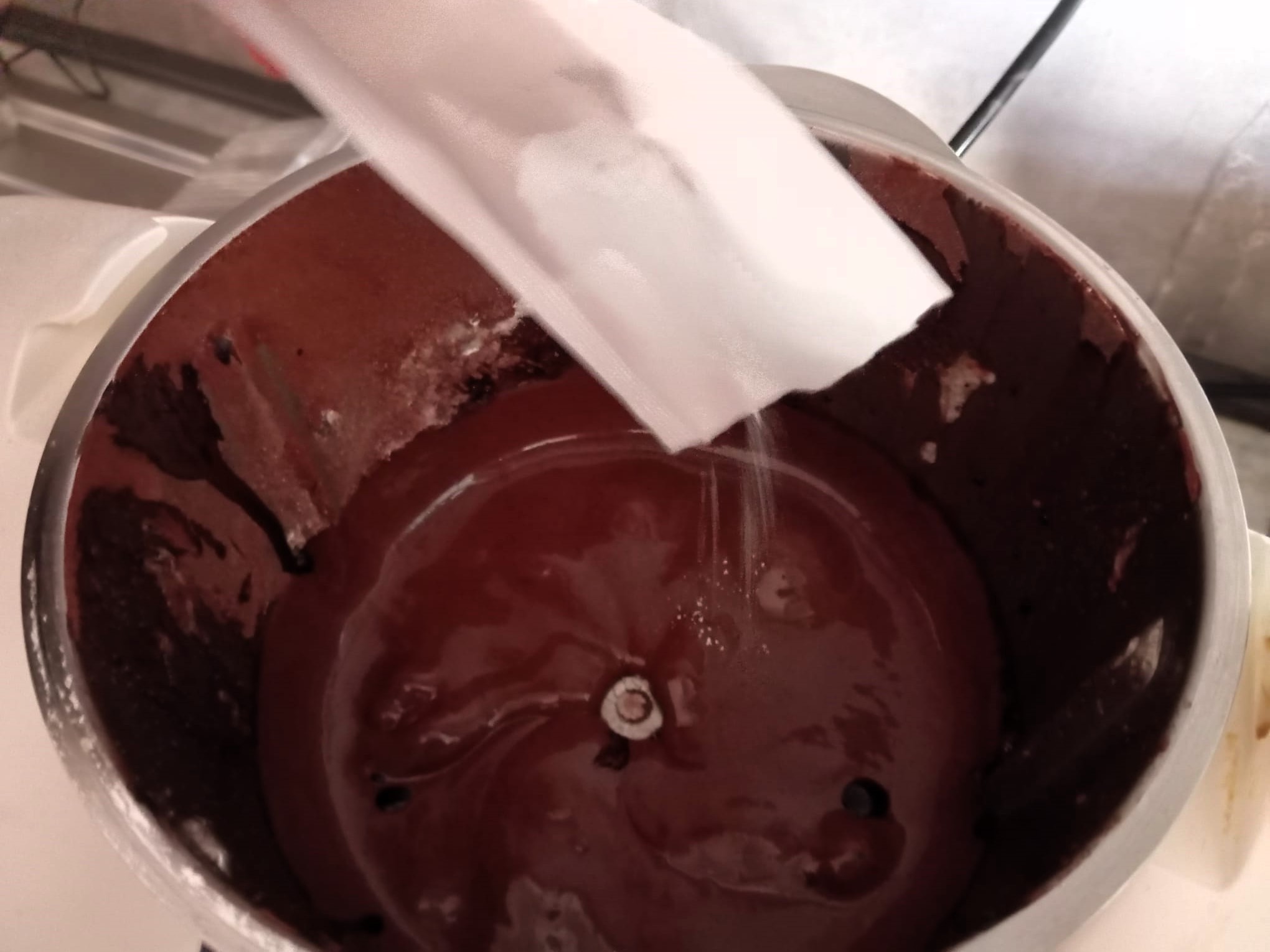 poi aggiungete il lievito, fate mescolare ancora per dieci secondi a velocità 6.