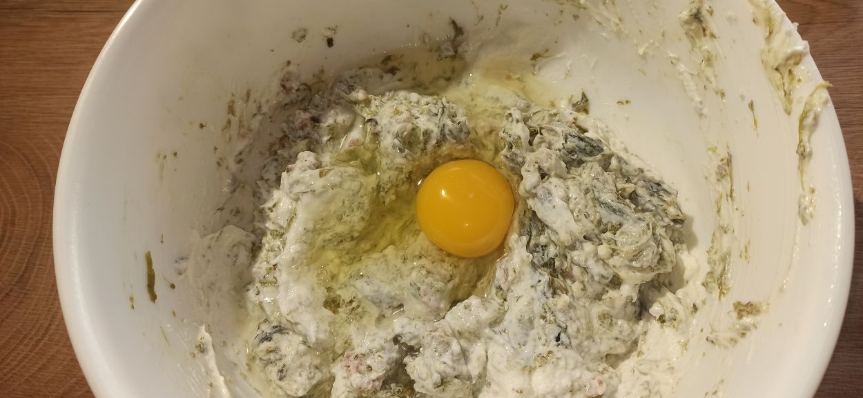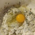 Mescolate bene, poi aggiungete la ricotta, il pepe, e la noce moscata. Mescolate ancora, poi aggiungete l’uovo.