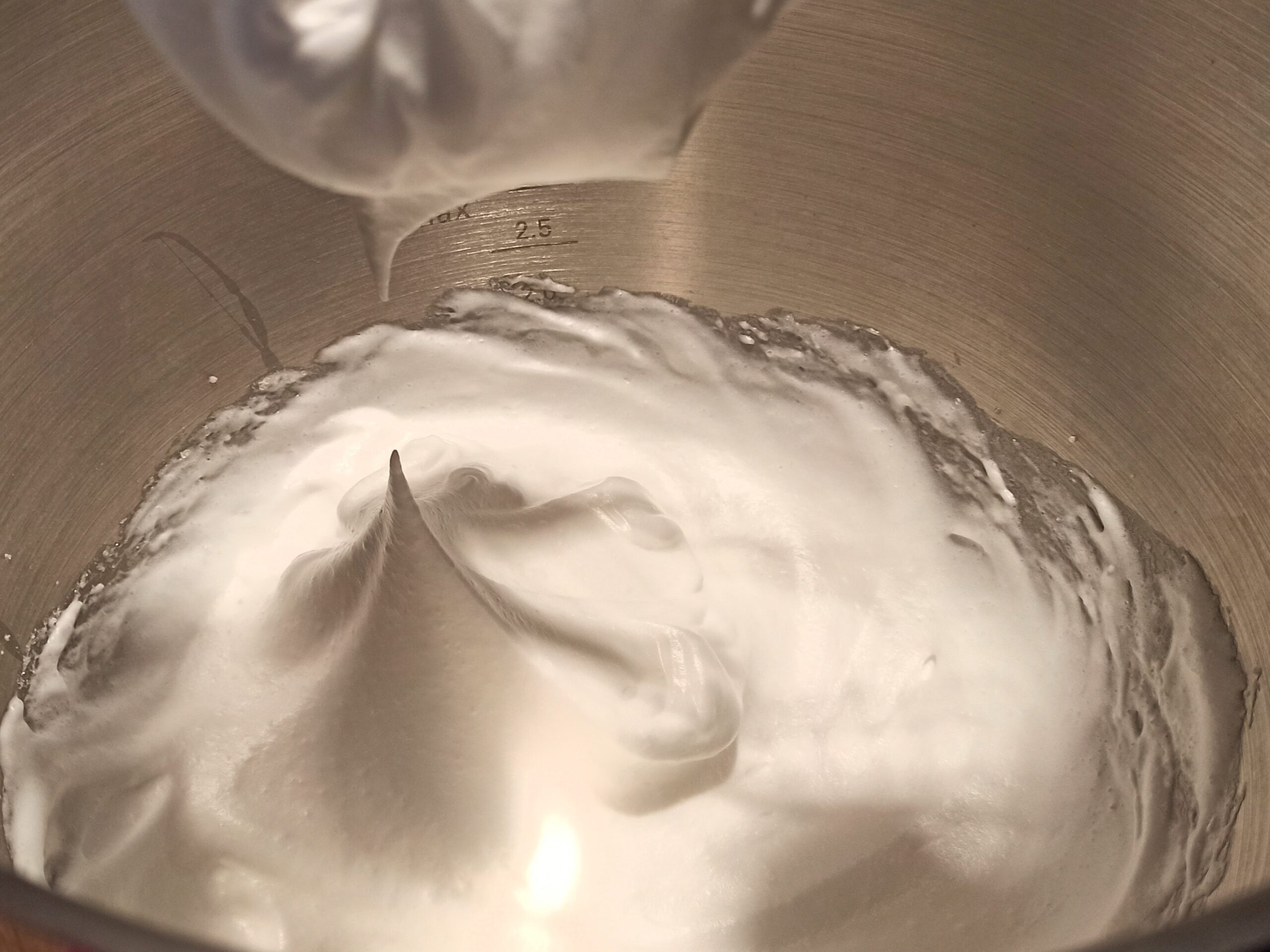 Mettete la farina, il lievito e lo zucchero, mescolate bene. Montate a neve gli albumi,