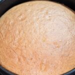 Imburrate ed infarinate una tortiera da venti centimetri di diametro, infornate in forno statico preriscaldato a 180°, per circa trenta minuti, fate sempre la prova dello stecchino. Sfornate, lasciate riposare per cinque minuti,