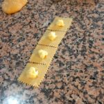 Trascorso il tempo di riposo, stendiamo la pasta utilizzando la macchina per la pasta (nonna papera), prelevandone piccole porzioni alla volta e lasciando il resto coperto con pellicola per evitare che si secchi. Lo spessore della sfoglia deve essere sottile ma non eccessivamente (possiamo usare il penultimo scatto della macchinetta).