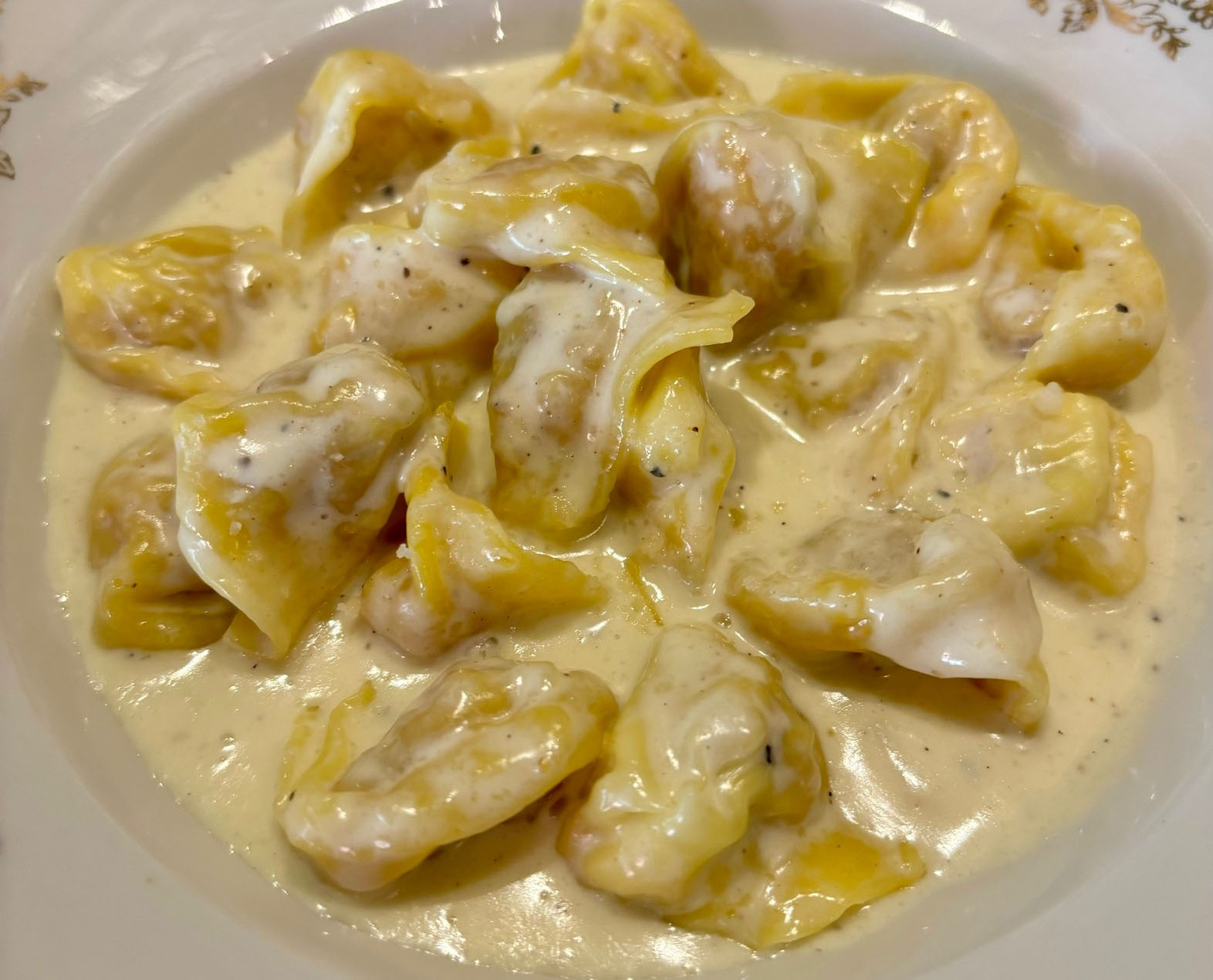 I tortellini in crema di parmigiano sono il piatto che ha consacrato Massimo Bottura, che ne ha fatto il suo cavallo di battaglia. Ma la passione dello chef per questo formato di pasta nasce sin dai tempi dell’infanzia: “Quando ero piccolo, per scappare dai miei fratelli maggiori mi nascondevo sotto al tavolo della cucina. Mi rifugiavo dietro le ginocchia di mia nonna Ancella, mentre stendeva la pasta con il mattarello. Mentre la farina cadeva intorno a me, allungavo la mano e rubavo i tortellini che stava preparando con cura. Li mettevo in bocca crudi e li masticavo a lungo, fono ad estrarne tutto il sapore. Rivivo quel ricordo felice ogni volta che mangio i tortellini”.