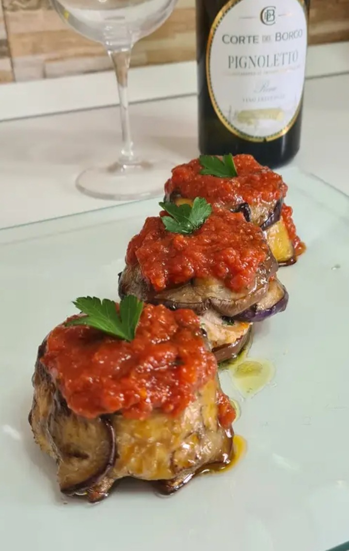 Vuoi sorprendere a tavola con un piatto che unisce morbidezza, gusto intenso e un irresistibile cuore filante? Questi tortini di melanzane ripieni di carne sono perfetti: un involucro di melanzane grigliate racchiude un impasto di carne morbido, arricchito da un cuore di formaggio che si scioglie ad ogni taglio. Sono ideali per una cena speciale, ma anche per un pranzo della domenica.