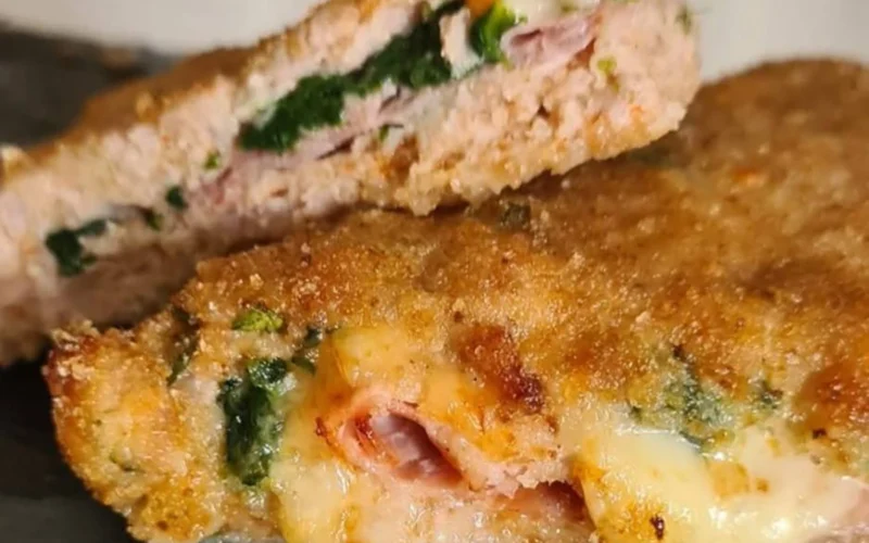 In una ciotola metti la carne macinata, lโuovo, il pangrattato, il parmigiano, sale e pepe. Mescola bene fino a ottenere un composto compatto. Dividi lโimpasto in 8 porzioni uguali. Schiacciale con le mani o con un coppa pasta, cosรฌ da formare dei dischi sottili. Su 4 dischi metti una fetta di prosciutto, una di formaggio e un poโ di spinaci. Copri con gli altri dischi di carne e sigilla bene i bordi. Passa i tramezzini prima nella farina, poi nellโuovo sbattuto e infine nel pangrattato. A questo punto puoi scegliere: friggili in olio caldo finchรฉ diventano dorati, oppure cuocili in forno a 200 ยฐC per circa 20 minuti, girandoli a metร cottura. Servili caldi, cosรฌ il formaggio allโinterno sarร filante.