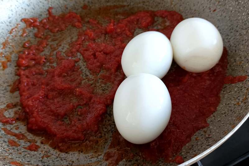Uova sode in salsa di pomodoro