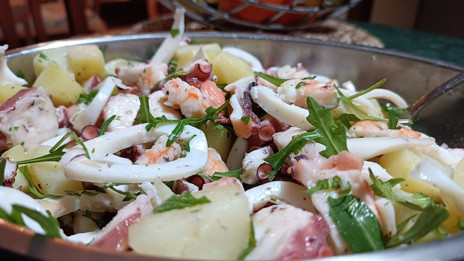 L’insalata di mare è un classico della cucina italiana, perfetta come antipasto leggero o secondo piatto raffinato. Questa versione include polpo, calamari, seppie e gamberetti, arricchiti da una giardiniera croccante e conditi con olio extravergine d’oliva, succo di limone e prezzemolo fresco. Un piatto semplice ma ricco di sapore, ideale per ogni occasione.