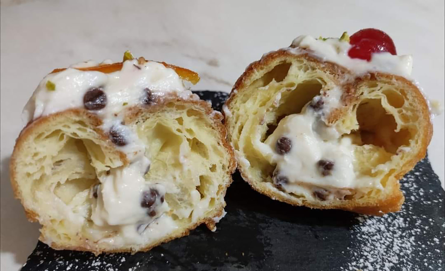 - granella di pistacchio, ciliegie candite q.b.