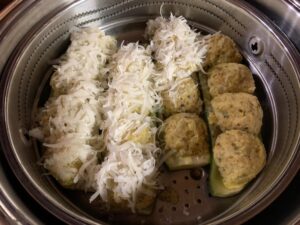 Adesso bisogna cuocerle con la cottura che preferite. Per la Cottura in padella (con coperchio) versa mezzo bicchiere d’acqua in una padella capiente con coperchio. Disponi delicatamente le zucchine farcite nella padella. Condisci con un filo d’olio evo. Copri e cuoci a fuoco medio-basso per circa 30-35 minuti, aggiungendo un po’ d’acqua se necessario. A fine cottura, togli il coperchio, spolvera con parmigiano grattugiato e alza la fiamma per gratinare leggermente la superficie.