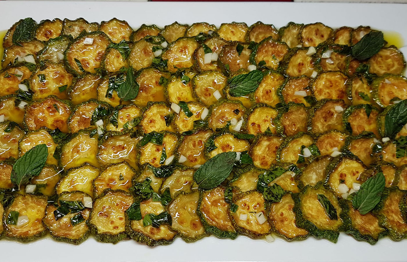 Non mettetene tante per non far abbassare la temperatura elevata dell’olio. Ci vorrà qualche minuto per terminare la cottura. Ogni tanto giratele con un mestolo. L’olio non dovrà scurirsi, ma le zucchine si dovranno colorare. Un volta cotte, poco alla volta mettetele su una placca ricoperta con carta assorbente. Spostatele allora in una pirofila e conditele con l’aceto, la menta tagliata a julienne, sale, pepe, un filo d’olio e delle gocce di olio all’aglio. Le vostre zucchine alla scapece sono pronte. Buon appetito.