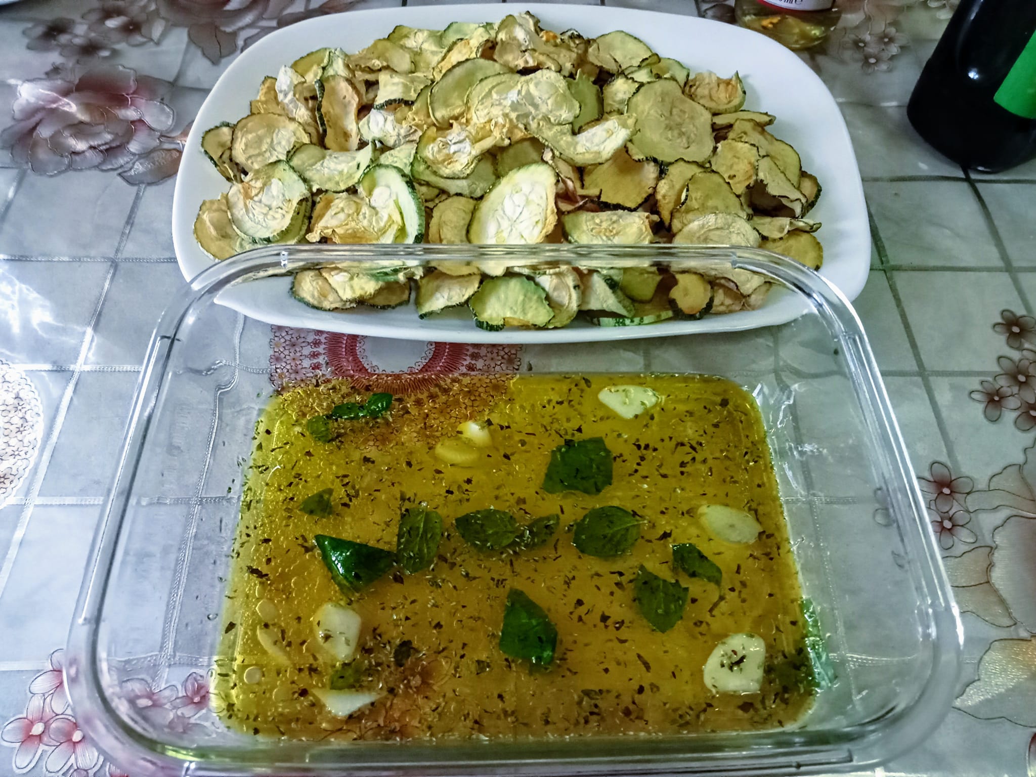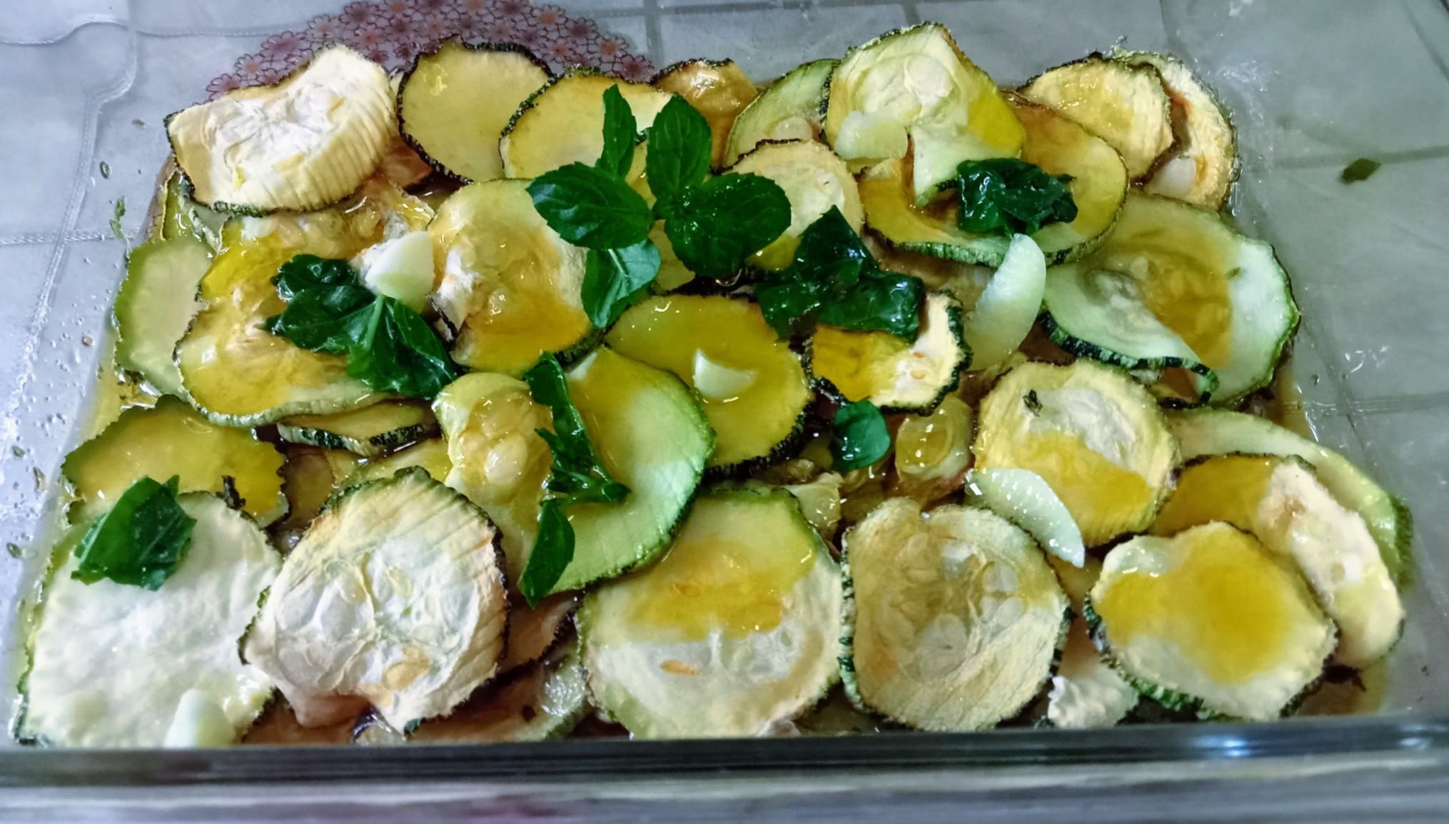 Una ricetta che potete preparare con le zucchine essiccate al sole è quella delle zucchine sott’olio. La prima cosa da fare è fare ammollare gli ortaggi immersi nell’acqua per almeno mezz’ora. Scolatele e strizzatele bene. In una pentola unite acqua e aceto bianco e portate a bollore. Calate le zucchine e fatele cuocere per 8 minuti. Scolatele ancora e passatele nel piatto da portata. Conditele con olio extravergine di oliva, aglio tagliato a fette, timo fresco e menta.