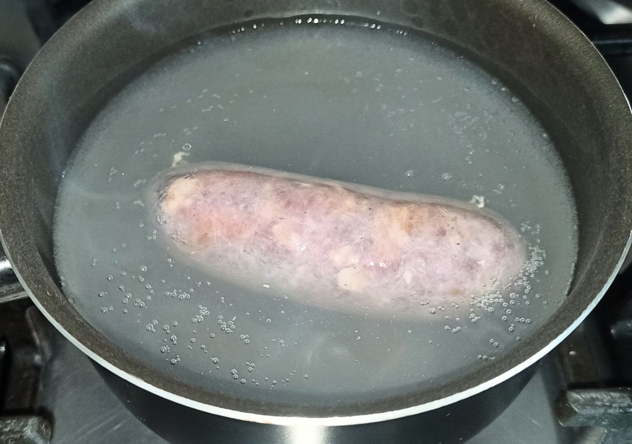 Per rendere meno grassoso il cotechino irpino, vi consiglio di lessarlo per qualche minuto, in modo da eliminare un poco di grasso.